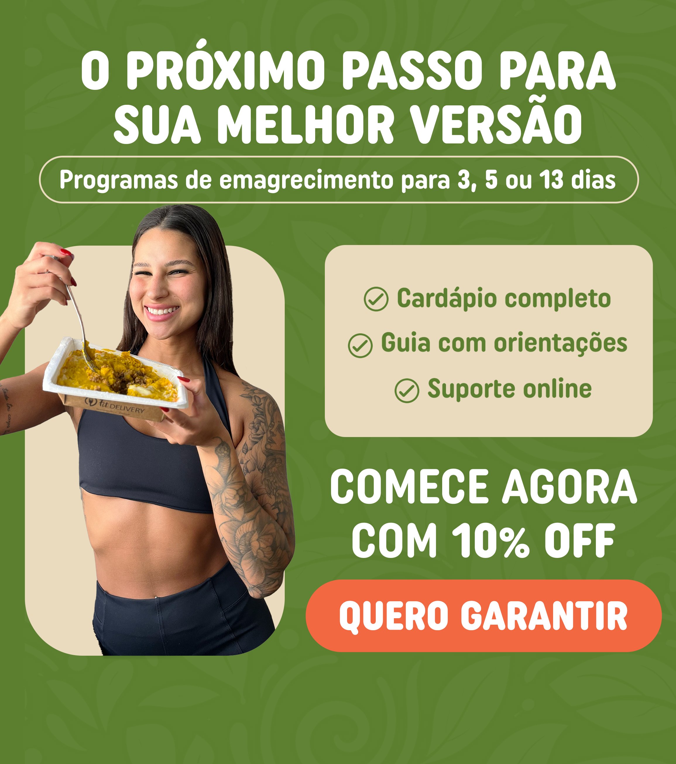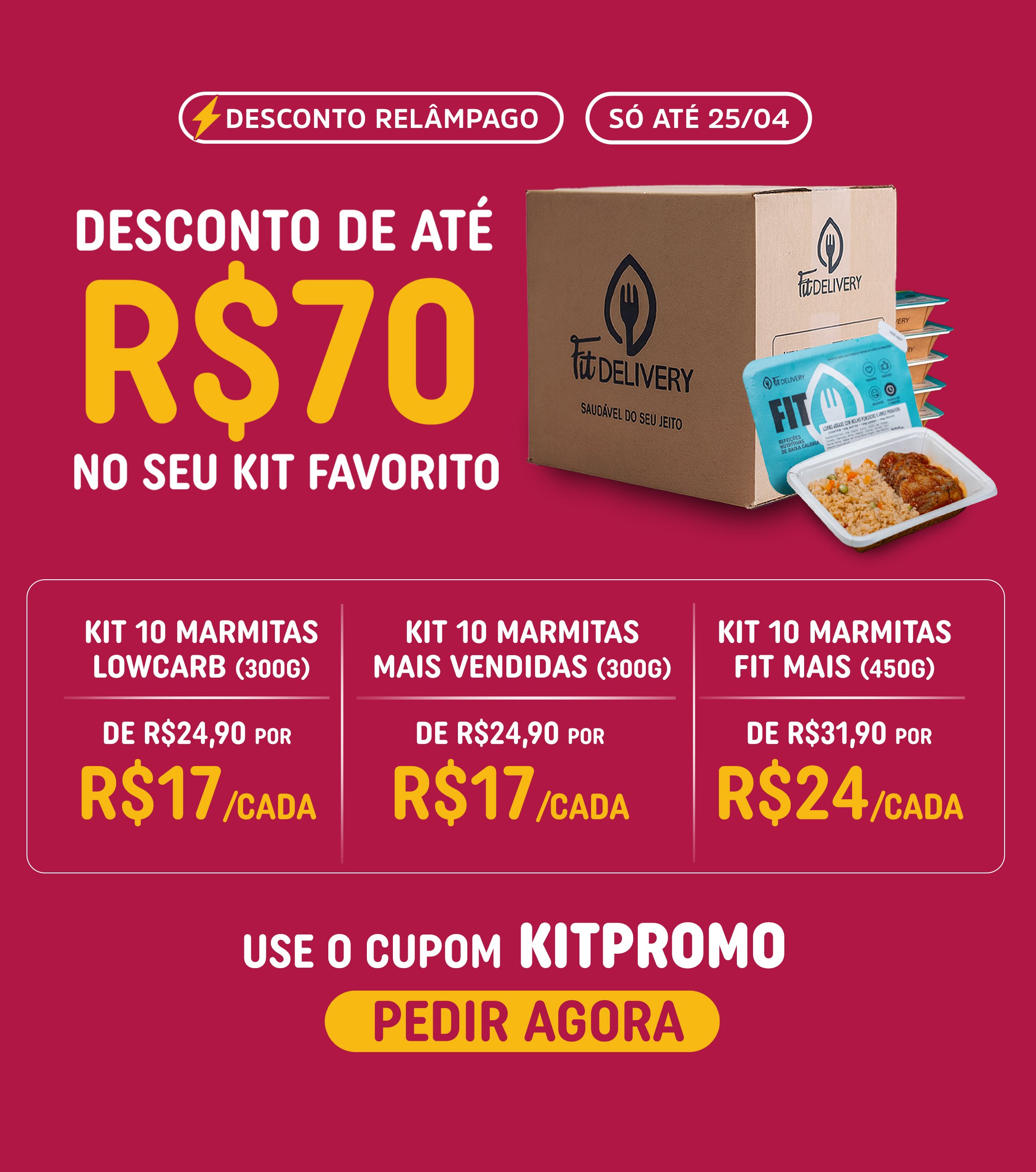 Kits com refeições de baixo carboidrato, que geram saciedade e auxiliam na perda de peso saudável.